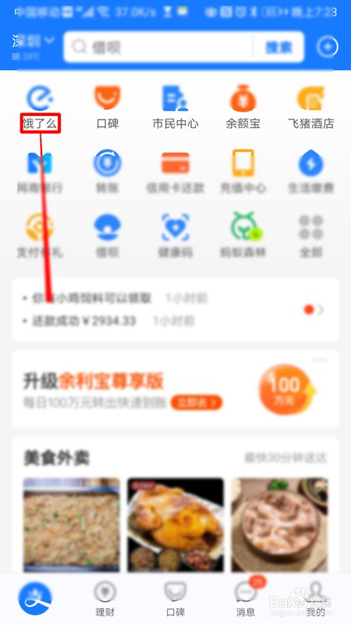 - 2在左上偏向,寻找饿了么。