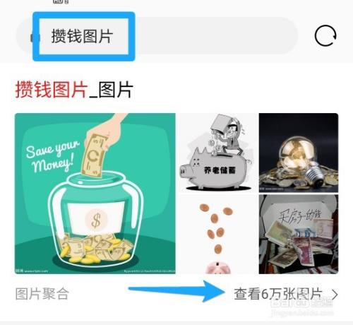在华为浏览器搜索框输入关头字【攒钱图片】,点击【查看】