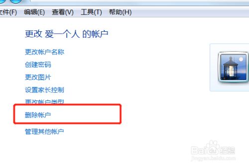 在打开的窗口中点击右侧“删除账户”打开,如下图