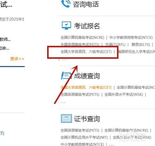 点击测验报名下的全国大学英语四、六级测验(CET)。