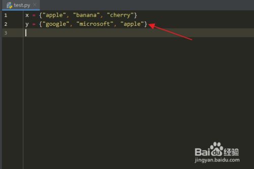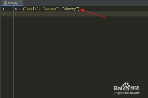 在python文件编纂区中,利用大括号界说一个“x”调集对象。