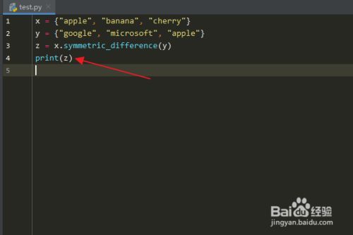 继续输入:“z = x.symmetric_difference(y) ”,点击Enter键。