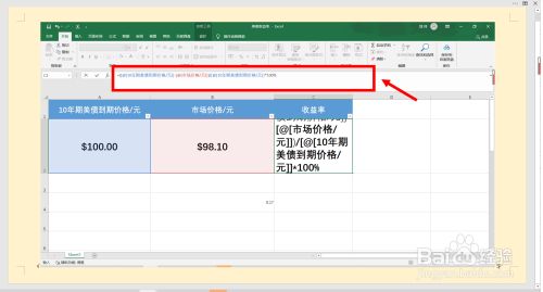 第四步,再除以“10年期美债到期价钱”,乘以“100%”。