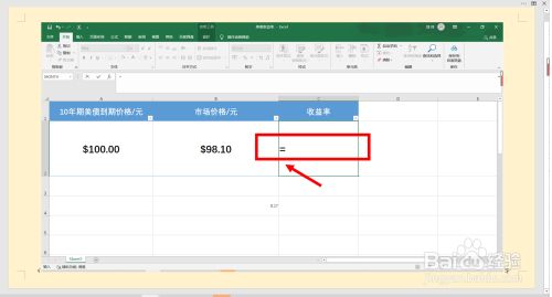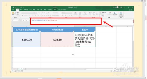 第三步,接着输入公式,用“10年期美债到期价钱”减去“市场价钱”。