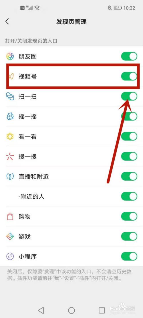 3.将视频号后的按钮点击打开,即可。