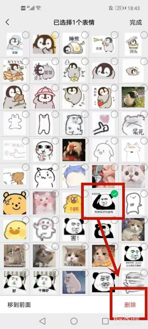 选上想删除的脸色包后点击右下角的删除。