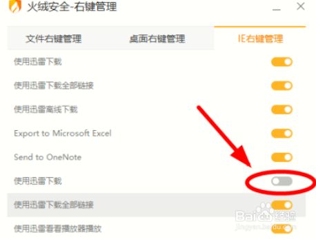 5、选摘要封闭的某项右键菜单(好比利用迅雷下载)单击封闭后面的功能开关即可