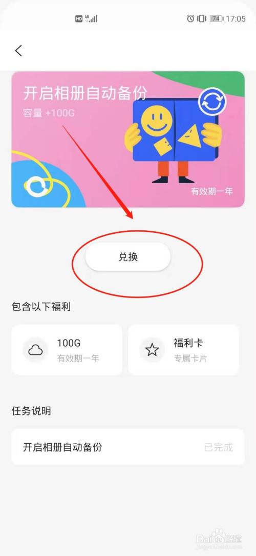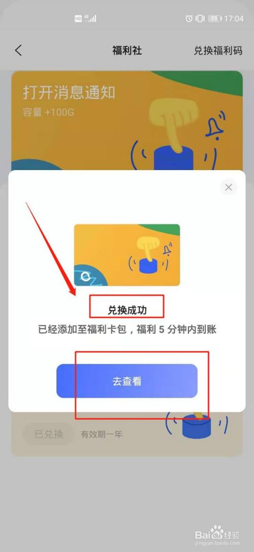 最后提醒兑换当作功后,选择“去查看”,看看容量进级环境。