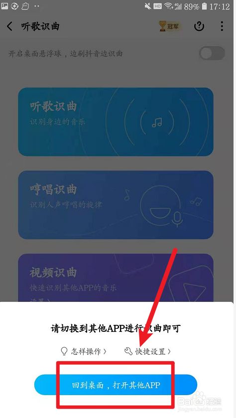 点击“回到桌面,打开其他APP”。