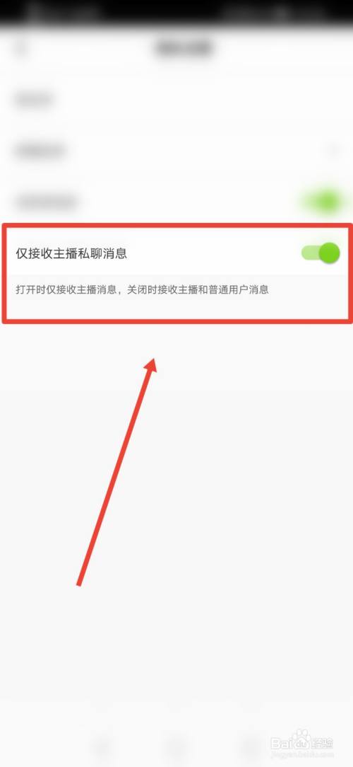 进入之后,我们将仅接收本家儿播私信动静功能打开,这样就设置完当作了。