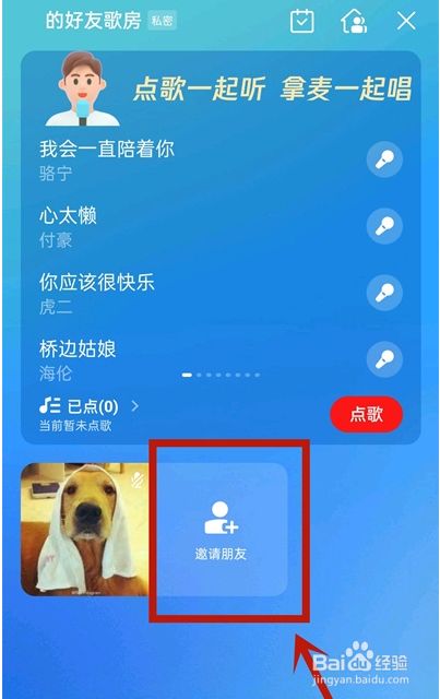 3、点击【建立歌房】,点击【邀请伴侣】,