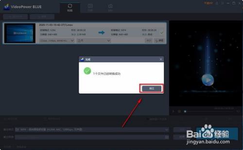 视频播放速度调整完毕后,我们会看到界面上有一个完当作的提醒窗口,点击窗口右下角的“确定”按钮,就可以查看转换格局后的视频。