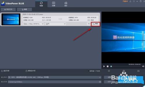 将视频添加到软件后,我们在文件的后面找到“编纂”按钮,点击该按钮,界面上就会呈现一个视频编纂窗口。