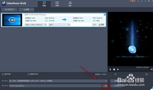 接下来在界面左下角找到“输出目次”选项,我们点击该选项后面的文件夹按钮,就可以设置视频的保留位置。