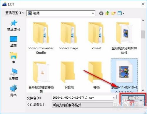 接着在文件添加页面中,我们将需要调速的视频选中,再点击页面右下角的“打开”按钮就可以了。