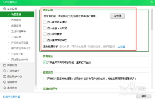 然后在根基设置,里面的功能定制的都打消勾选一下,
