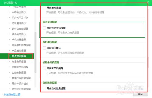 之后还有核心资讯提醒,里面这几项提醒都打消勾选一下。