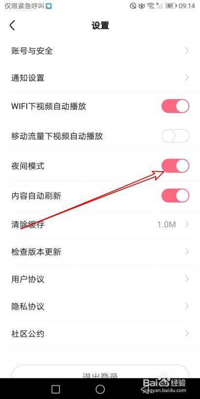 点击设置项后面的开关,把它设置为打开状况就可以了,这样我们就使软件进入了夜间模式。