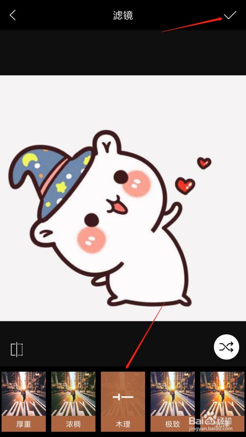 按照本身的需求选择一条目的滤镜,然后点击右上角的勾勾按钮即可。