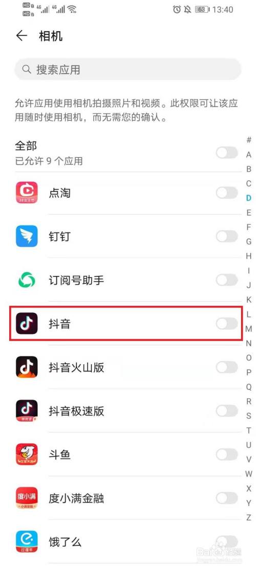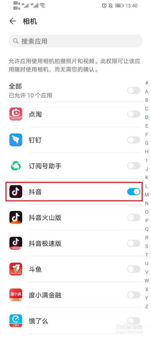 打开“抖音”右侧的开关。