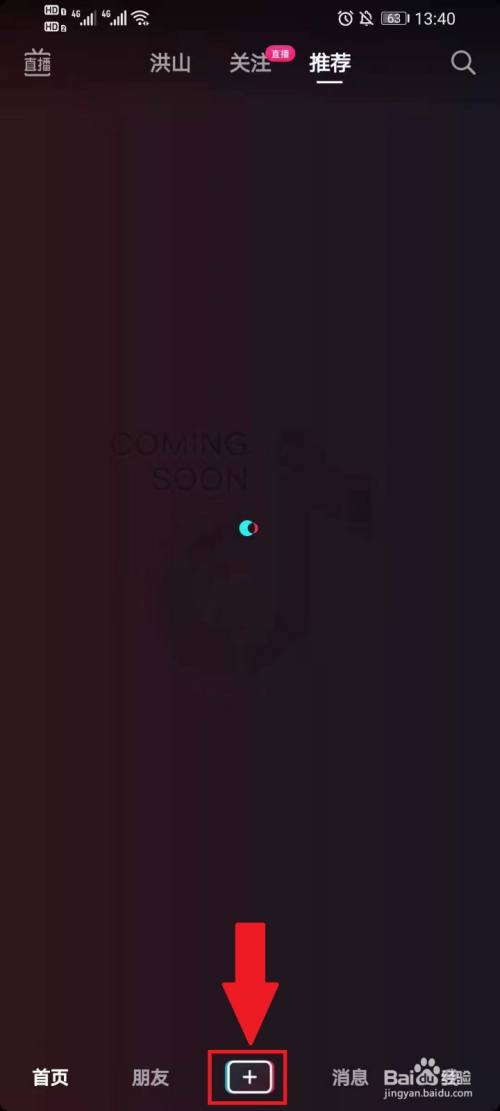 打开抖音APP,点击底部的【+】。