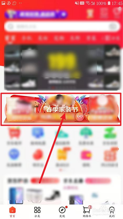 因为正在开展活动,在首页即可看抵家装节进口。点击进入。