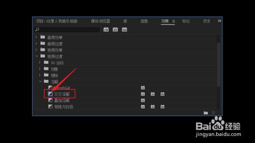 会看到【交叉消融】黑方框外面有个蓝框(这是默认过渡标记)
