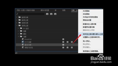 左键单击【将所选过渡设置为默认过渡】
