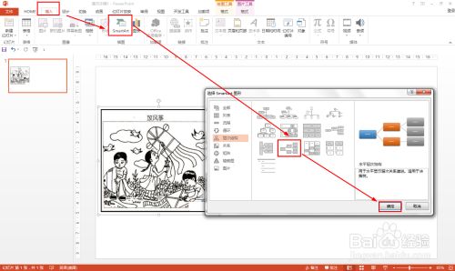 点击插入——SmartArt,然后选择程度条理布局——点击确定。