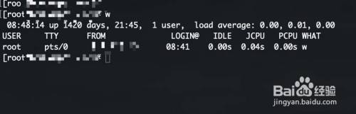 输入号令w按下enter回车查看当前用户是否为root用户,若是不是则切换用户到root。