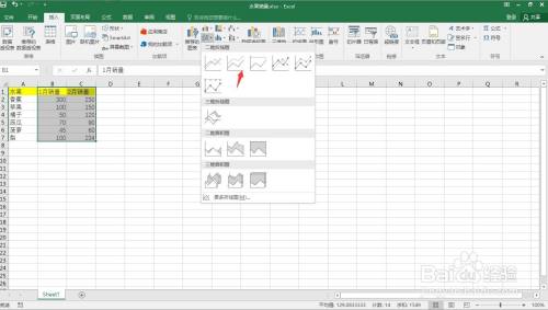点击“折线图”标识右侧的小三角。
