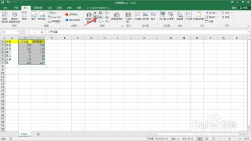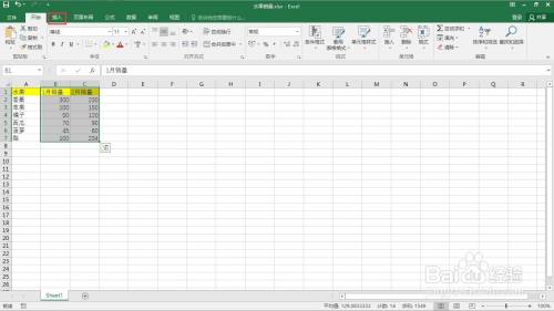 选中”1月“以及”2月“的所稀有据。