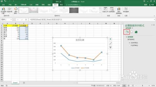 鼠标右键选择“设置数据系列格局”。