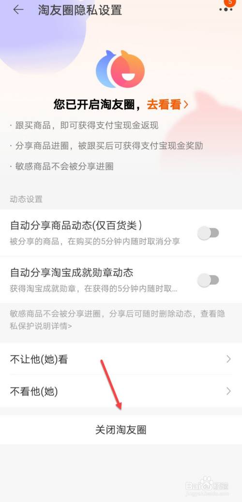 点击封闭淘友圈,这样操作后就不会再主动添加老友了。