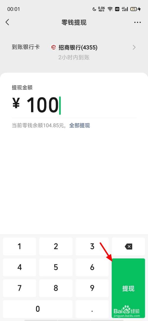 输入金额,点击 提现;