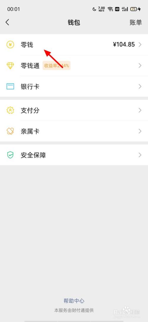 在钱包页面,点击 零钱;