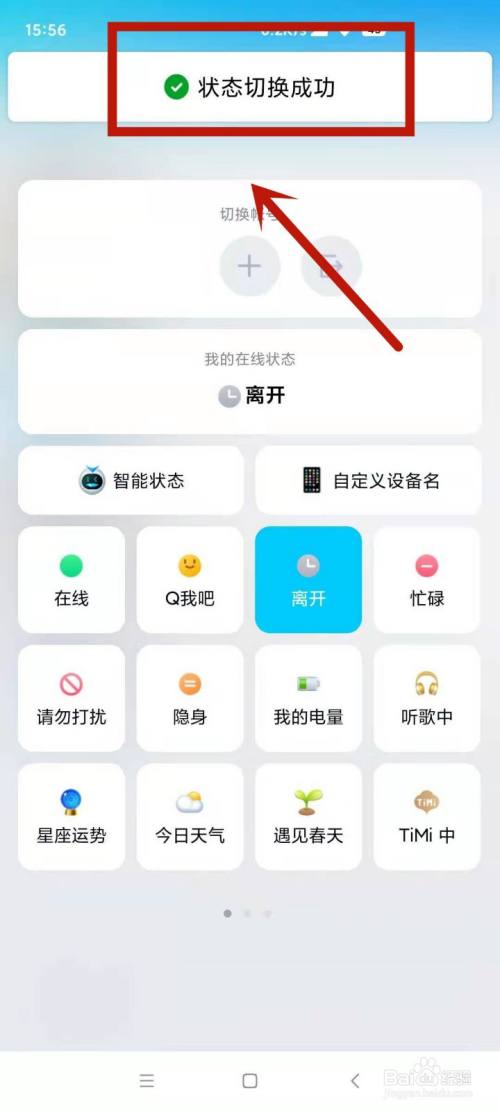 当上方栏显示状况切换当作功的字样,就代表分开状况下也不会主动发信息给别人了。