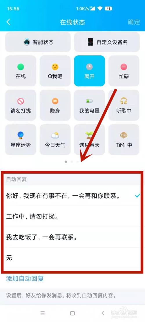 2.点击页面的分开,看一下本身是不是设置上了主动答复的内容。