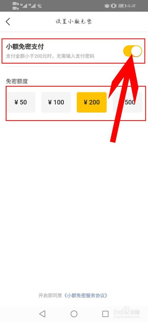 最后设置免密额度,设置完毕开启免密支付即可完当作操作