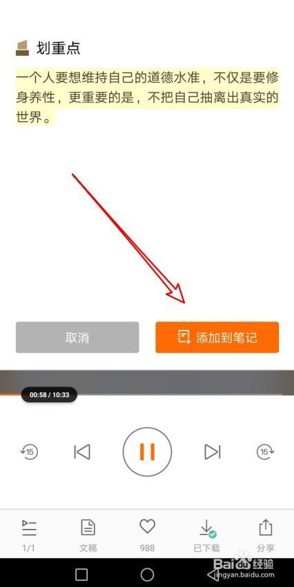 在打印的划重点编纂页面,点击右下角的添加到笔记按钮。