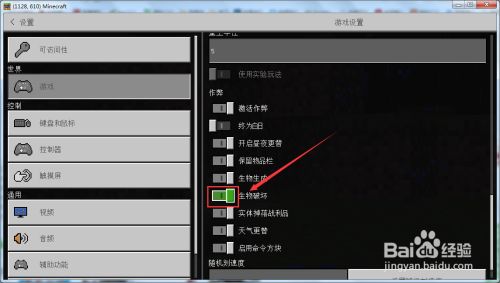 工具/原料Acer 4752Windows 7我的世界基岩版方式/步骤1点击“我的世界”启动按钮。2进入游戏界面。3按“ESC”键退出,点击“设置”选项。4点击“游戏”选项。5点击“气候更替”前面的开关按钮即可。END注重事项tips:攻略小我清算,