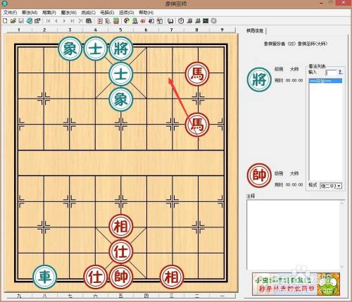 它的原型是用一马在对方九宫侧翼节制将门,另一马挨着这只马卧槽奔袭,迫使“将帅”不安于位,然后双马互借威力,回环跳跃,回旋进击而巧妙取胜的杀法。现延长为凡用双马腾踊攻将,从而组成巧妙杀局的,均称“双马饮泉”。