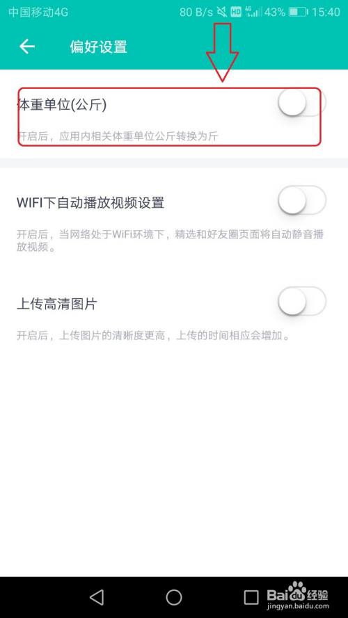 点击勾选体重单元。