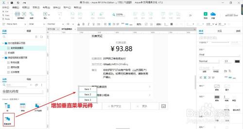 增添一个“垂直菜单”元件,并与“我的账单”元件进行程度居中对齐。
