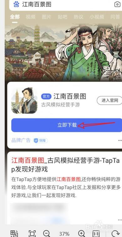 搜刮栏输入【江南百景图】,再点击下方的江南百景图下载安装网页。
