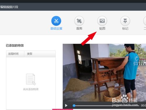 在【编纂视频片段】中,点击【贴图】选项;