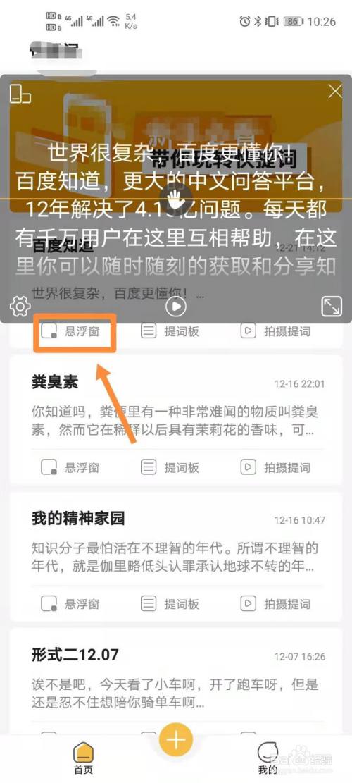 点击悬浮窗,提词面板就悬浮在手机界面上了。
