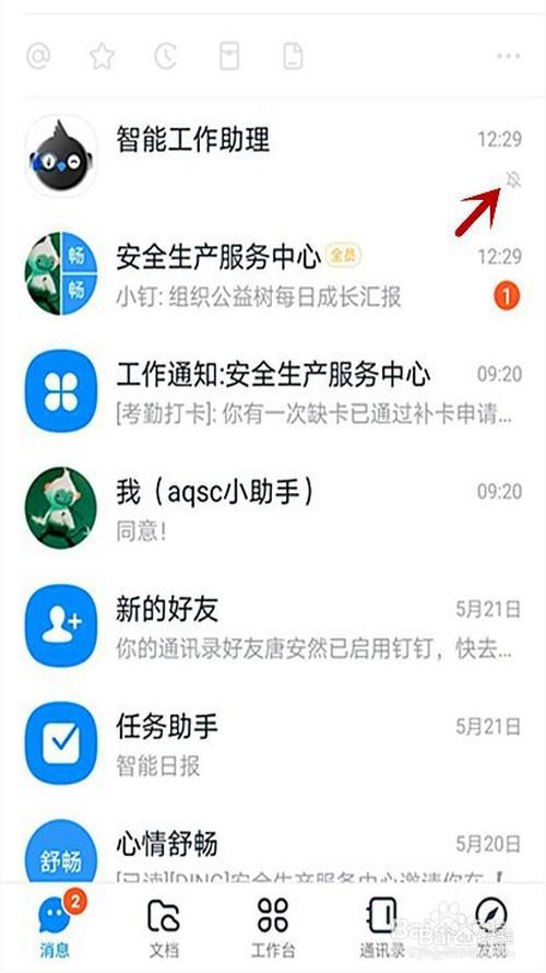 6、返回钉钉首页“智能工作助手”右侧显示封闭铃声的提醒。