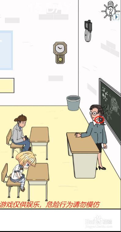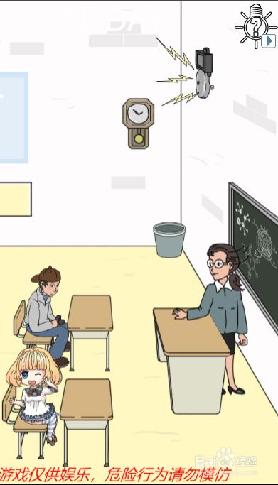 方式/步骤1首先在明星打盹的时辰,我们要点击她的头以免她倒下的时辰她的头碰着桌子2然后我们要注重教员的回头节拍3趁教员回头的时辰点击拿走教员的头花4然后利用头花敲击墙壁上面的下课铃5头花专敲击下课铃之后会发出下课的铃声56这样子明星就可以名正言顺的分开了,我们也就顺遂过关了END