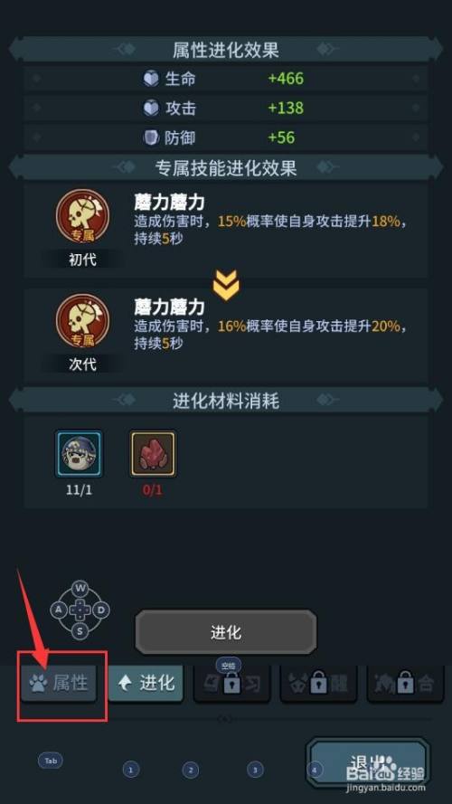 这时,在我们进入该契约兽属性界面后,我们点击下方的【属性】按钮;